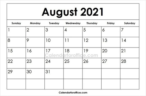 Blank 2021 August Calendar In Calendar For Office Scoop It