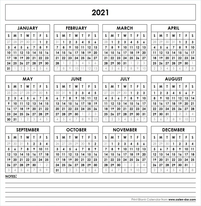 Yearly Calendar 2021 Free Download And Print