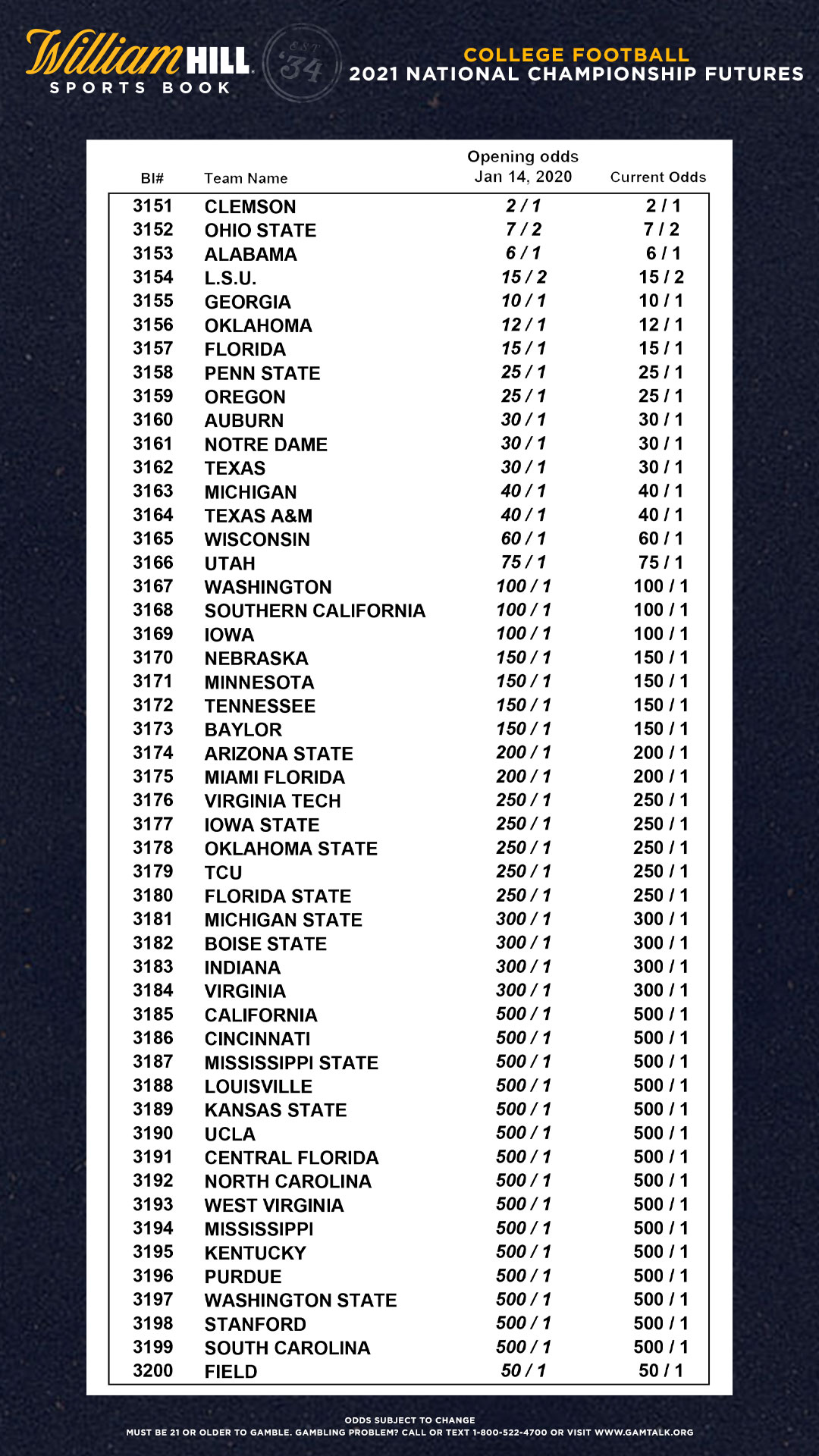 William Hill Us On Twitter 2021 College Football National