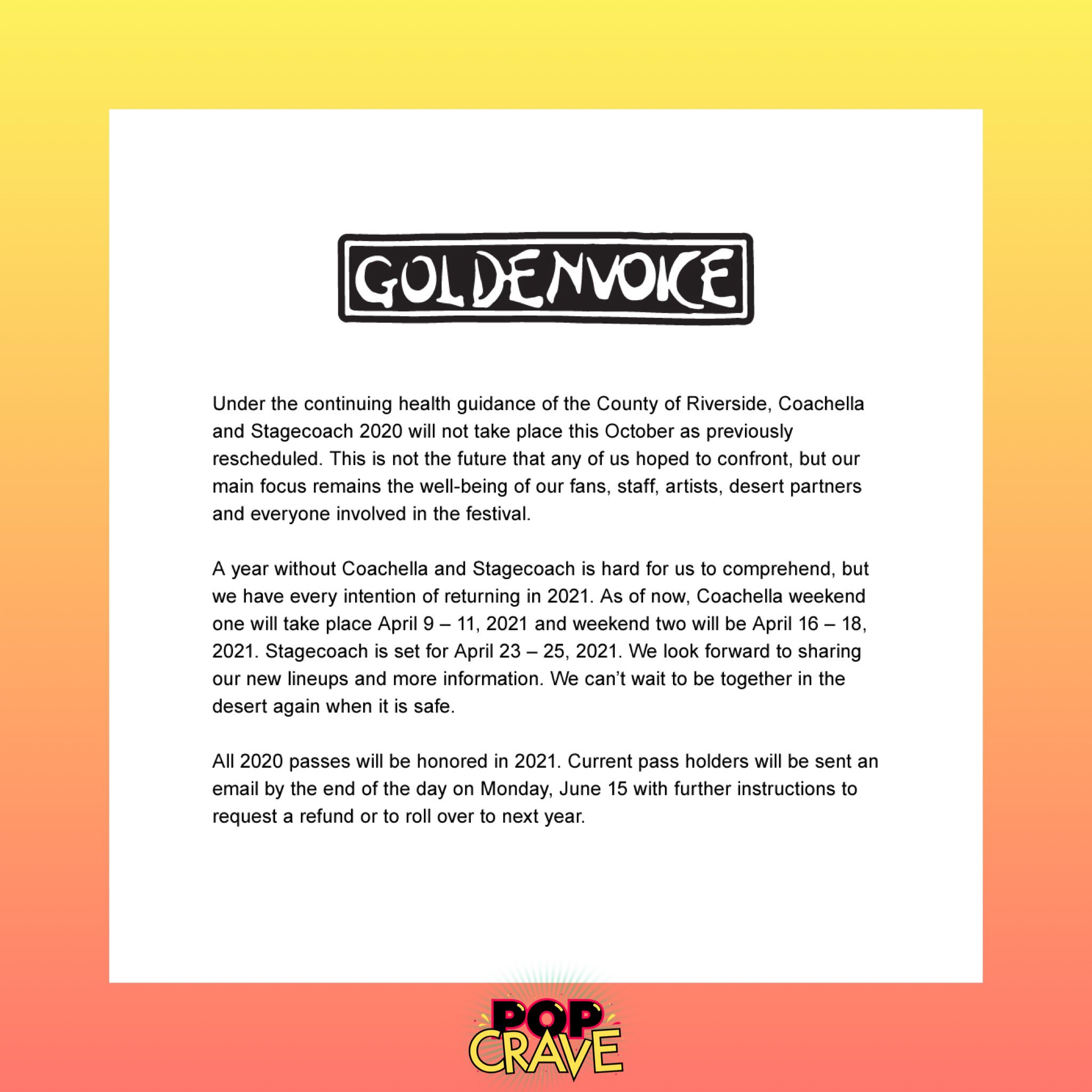 Goldenvoice Releases Statement On Coachella Cancelation 2021