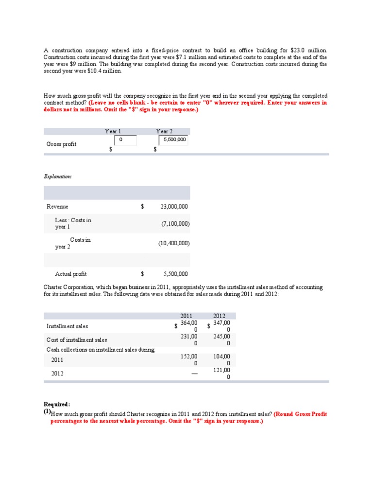 Problem 6 11 Algo Long Term Contract Revenue Recognition Upon