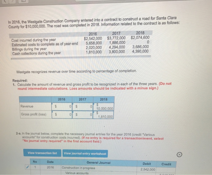 Solved In 2016 The Westgate Construction Company Entered
