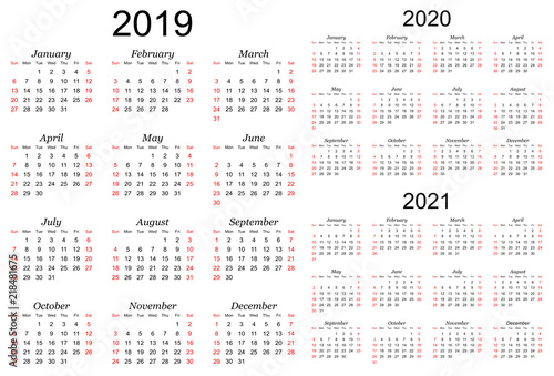 Three Year Calendar 2019 To 2021