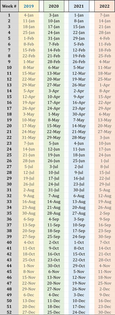 Timeshare Calendar For All Weeks And Years
